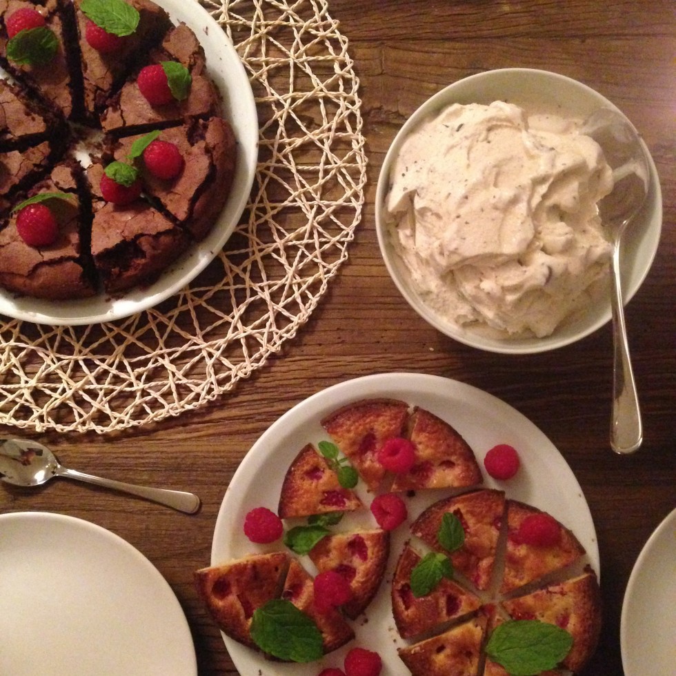 Når nu pigerne bliver inviteret til middag er en enkelt kage jo ikke nok til dessert, så det blev også til denne blondie fra Anne Au Chocolat og min egen yndlingsis (stracciatella)!